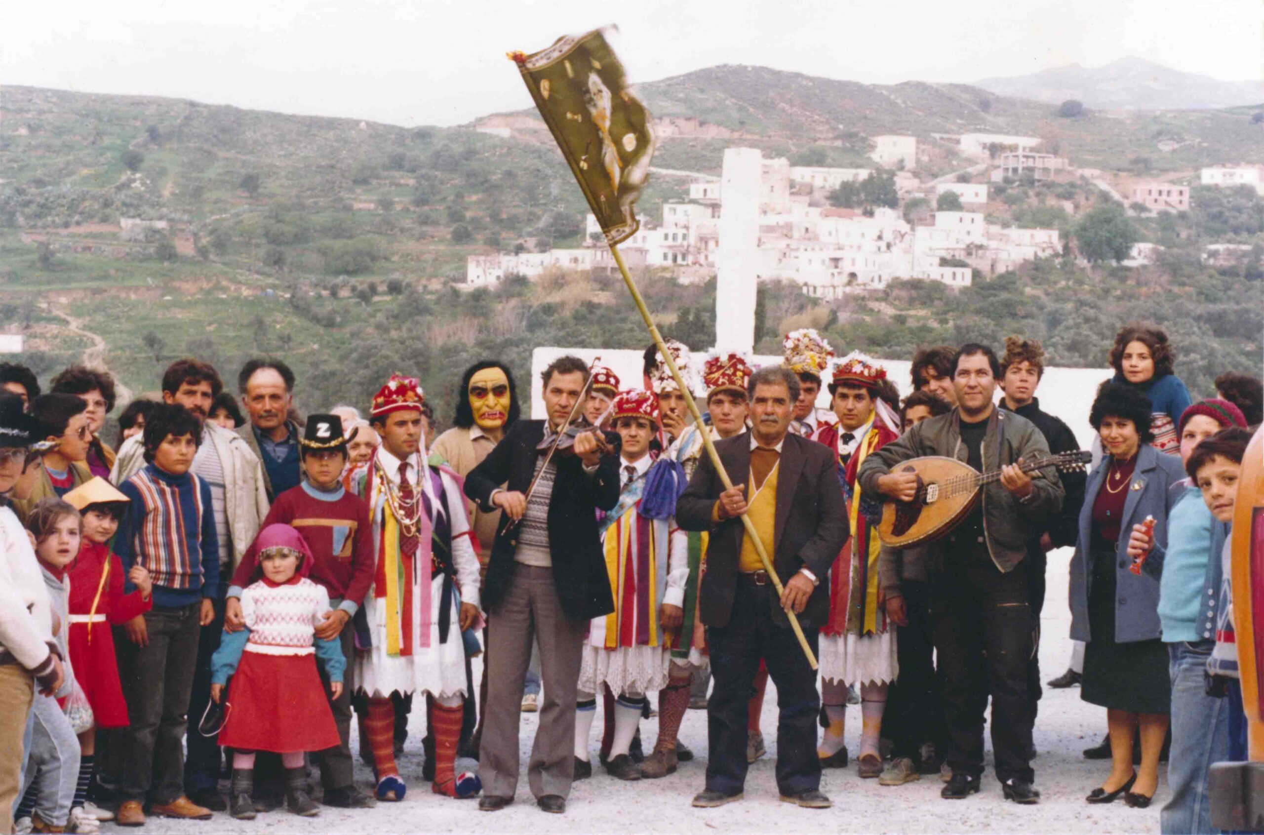 The custom of ‘Moskarada‘ exists and is observed in many communities of Naxos, but the groups or ‘Bairakia’ performing it bear different names. The ‘Bairaki’ from Melanes is called ‘Kordelades‘, and for decades, even today, the Kordelades go out for revelry with a specific group of villages every year, at the same time, namely at the beginning of last week of ‘Apokria’ (Carnival). According to the custom, the ‘Bairaki’ follows a specific ceremonial preparation (since Tsiknopempti), special attire, and then a ceremonial procession to the other villages participating in the custom, with the purpose, of course, to bring the celebration to the village they visit, while the leader of the ‘Bairaki’ or the most worthy Kordelas must know which young women of the village are newlywed in order to attempt to take their handkerchiefs and dance with them with respect and honor.